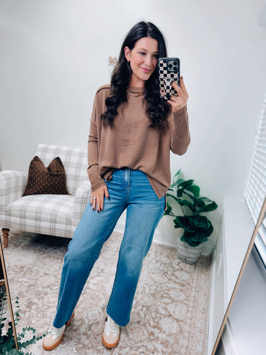 CURVY | DOORBUSTER Laci Ribbed Top - Brown