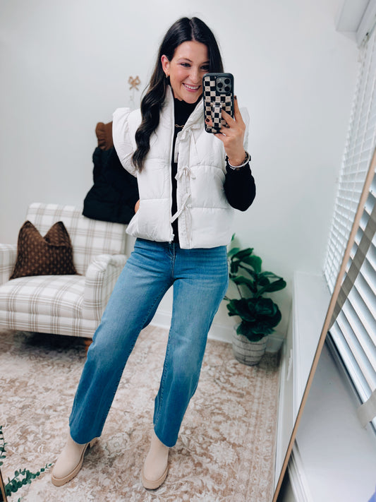 DOORBUSTER Flutter Sleeve Bow Puffer Vest - Ivory