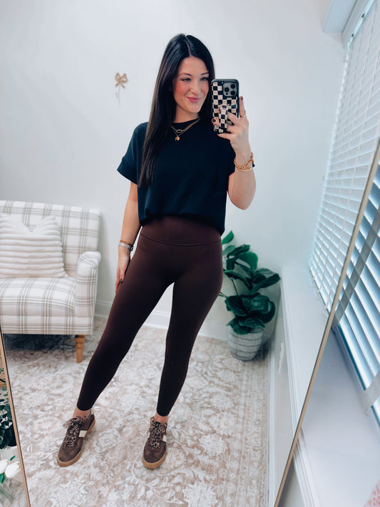 Essential Short-Sleeved Micro-Ribbed Top - Brown
