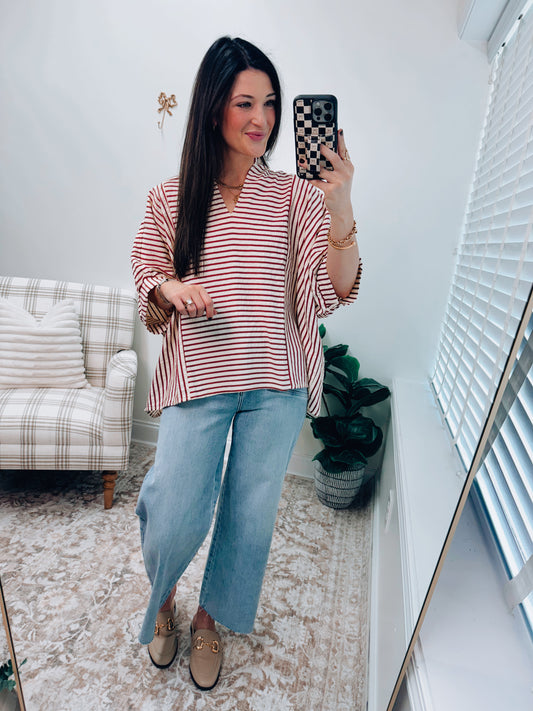 CURVY Denise Air Wick Woven Top - Ruby Red