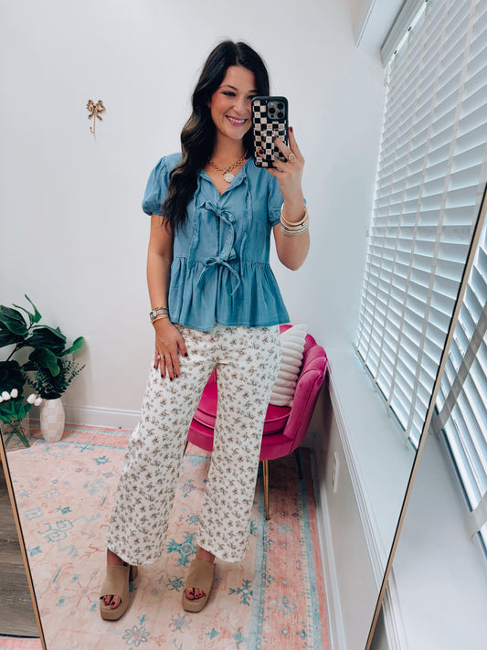 Sold outBow Chambray Denim Tie Top