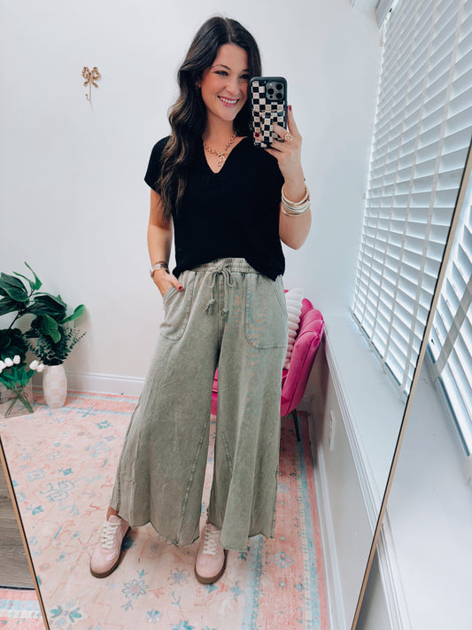 Annie Oatmeal Front Pocket Wide-Leg Denim