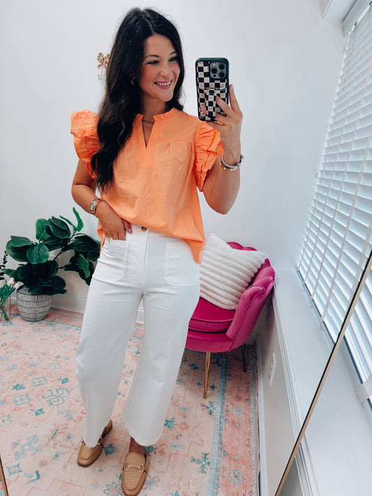 CURVY Front Pocket White Stretch Pants