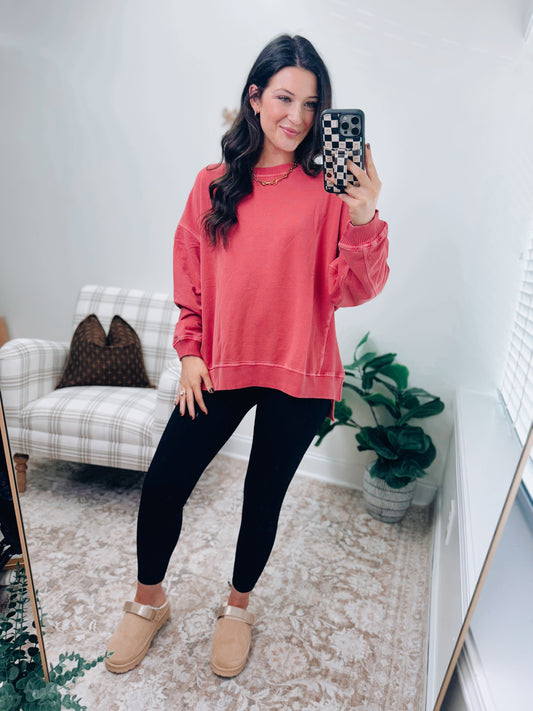 CURVY | DOORBUSTER Washed Light-Weight Crewneck - Red
