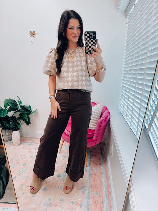 CURVY Ember Wide-Leg Folded Denim - Brown