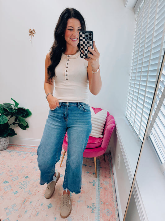 CURVY Henley Risen Front Pocket Denim