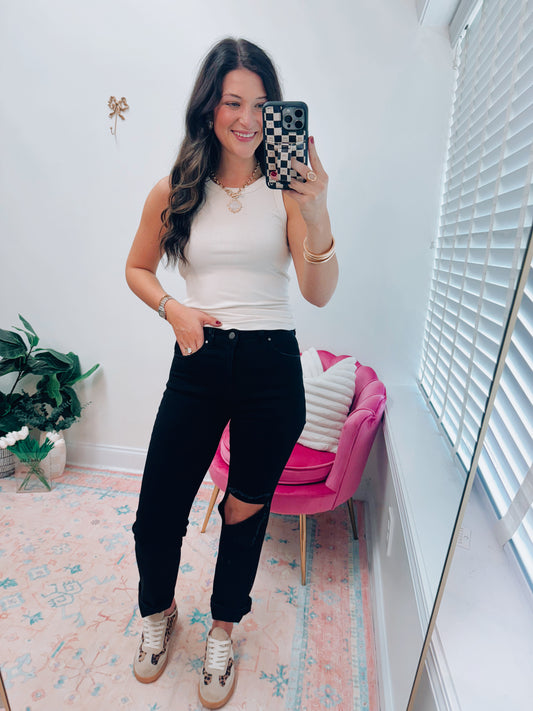 Leona Black Risen Knee Patch Denim