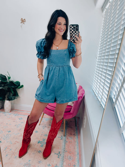 Denim Puff Sleeve Romper