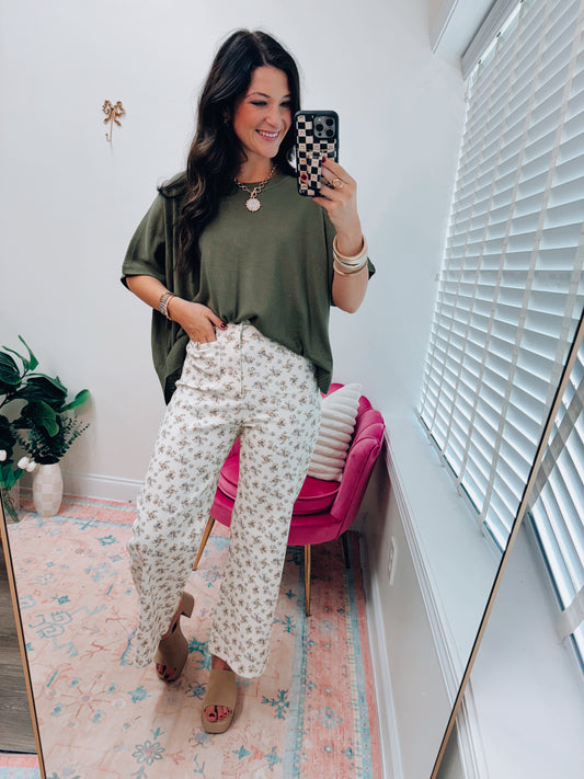 Ditsy Floral Front Pocket Wide Leg Denim
