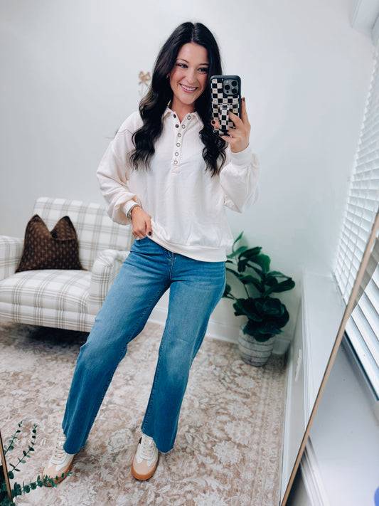 DOORBUSTER Collared Snap Button Pullover - Cream