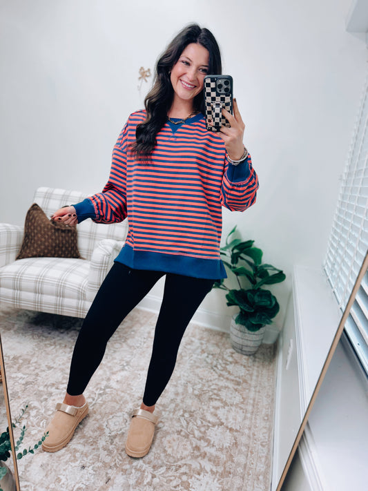 DOORBUSTER Comfy Casual Stripe Pullover - Coral