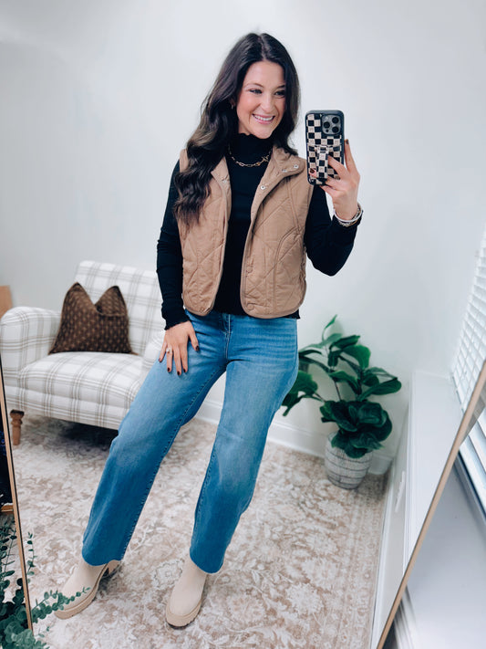 DOORBUSTER Snap Button Puffer Vest - Mocha