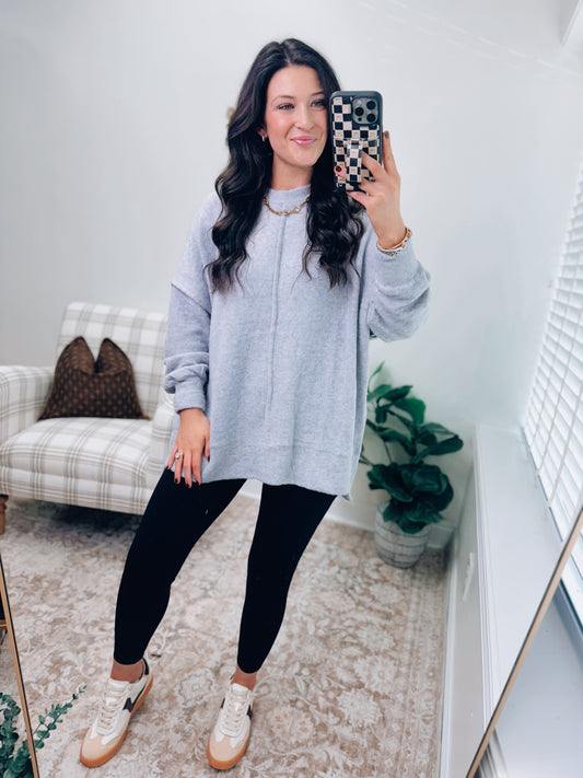 DOORBUSTER Oversized Front Seam Brushed Sweater - Gray