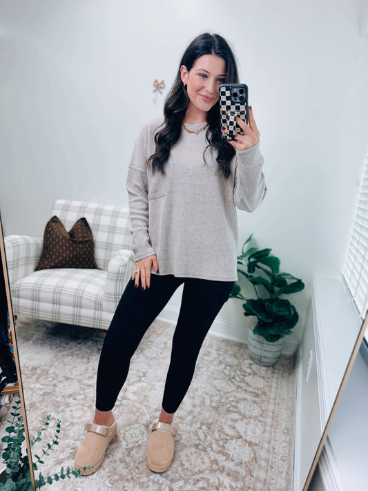DOORBUSTER Pocket Brushed Ribbed Top - Heather Mocha