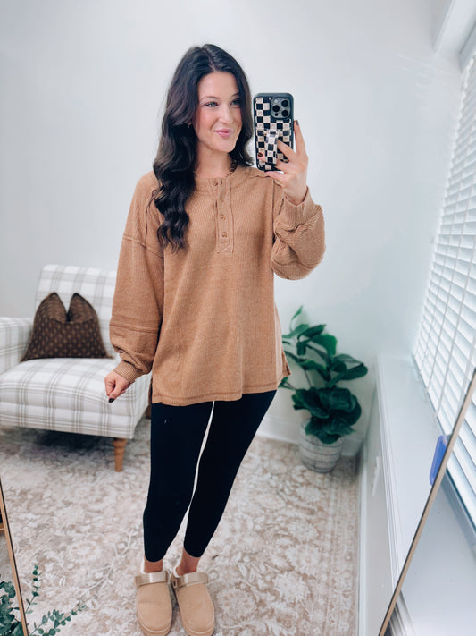 DOORBUSTER Button Brushed Ribbed Sweater - Camel