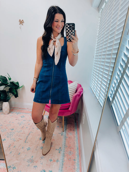Briar Denim Scoop Neck Zip Mini Dress
