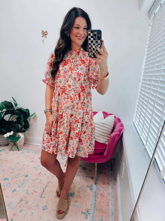 Sold outCinnamon Floral Scallop Mini Dress