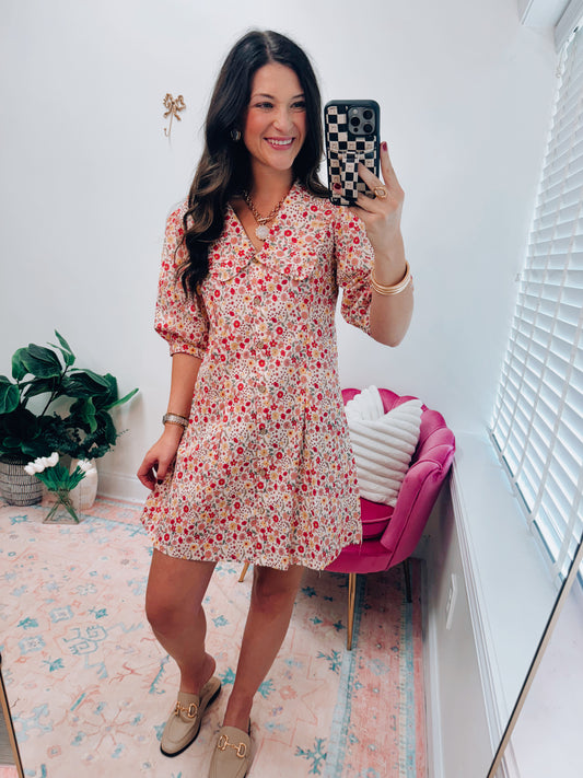 Sold outFall Floral Ruffle Collar Mini Dress
