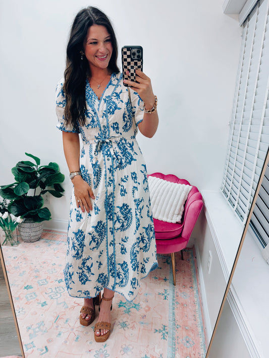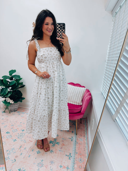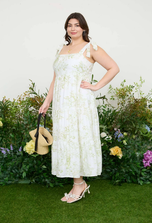 CURVY Fruit Blossom Tiered Midi Dress - Olive