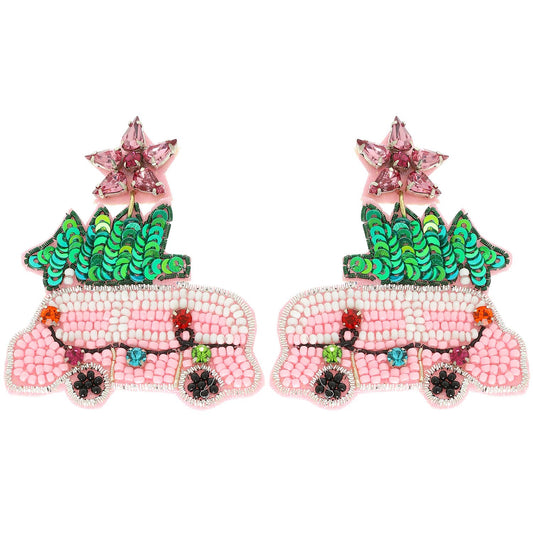 Jeweled Christmas Tree Beaded Embroidery Earrings