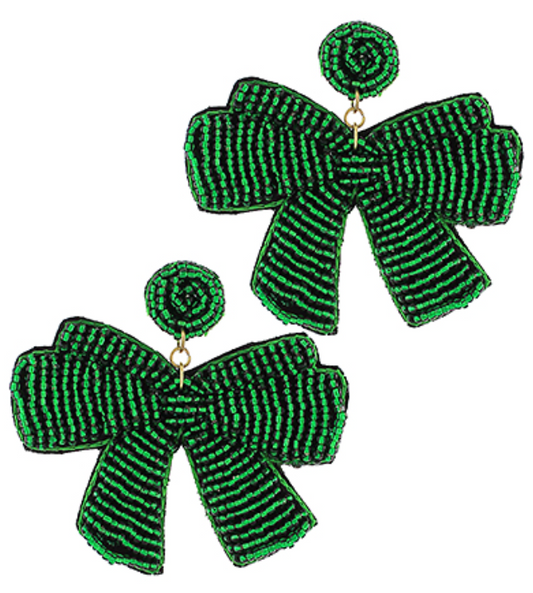 Bow Beaded Earrings - Green