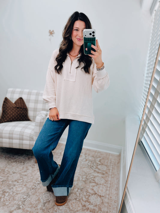 Everyday Layer Zip Patch Top - Cream