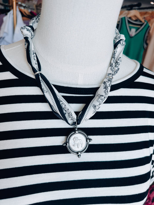 Houndstooth Bulldog Coin Scarf Necklace