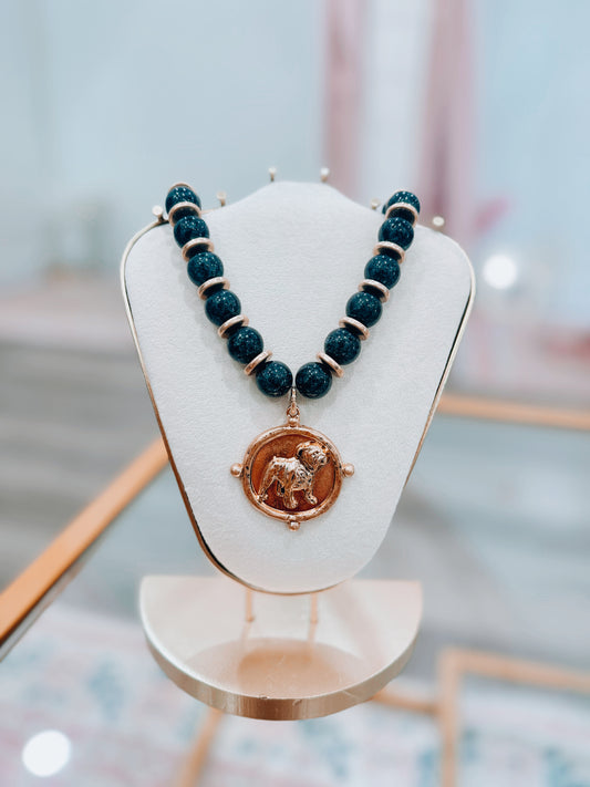 Chunky Beaded Bulldog Coin Necklace - Two Tone