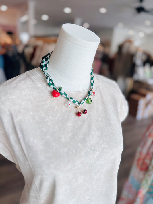 Cherry Charm Scarf Necklace