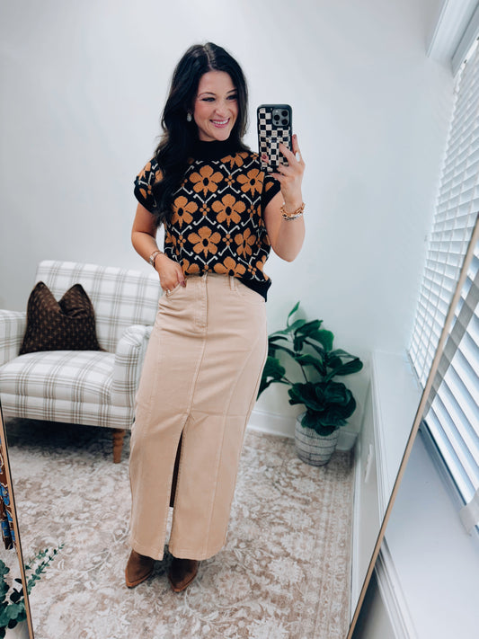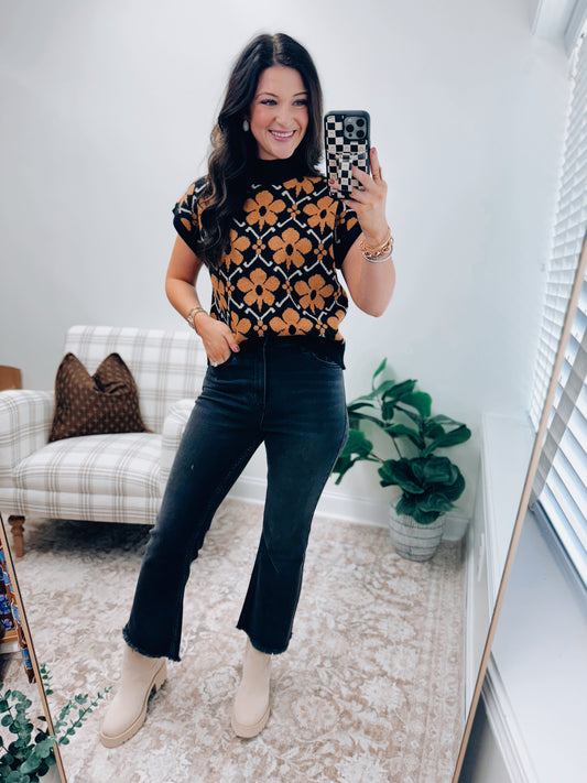 Vertical Floral Puff Sleeve Knit Cardigan Top