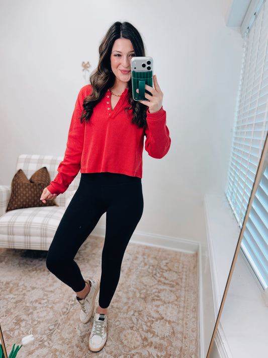 Mineral Washed Red Henley Top