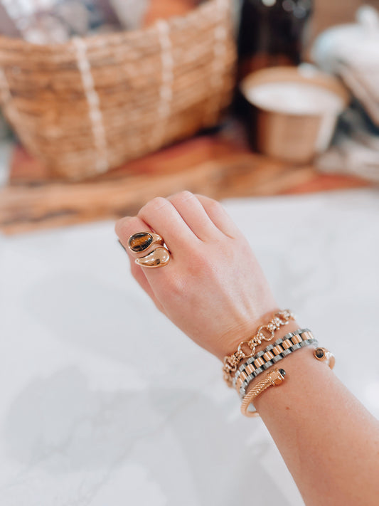 18k Gold Plated Julie Brown Inlay Wrap Ring