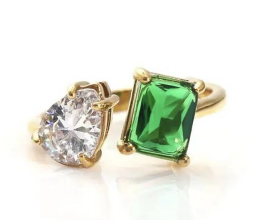 Emerald 18k Gold Plated Double Ring