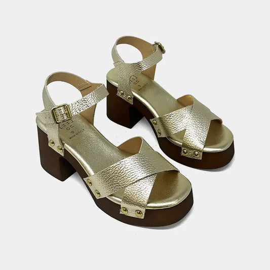 Giovanna Gold Leather Heels - Shu Shop