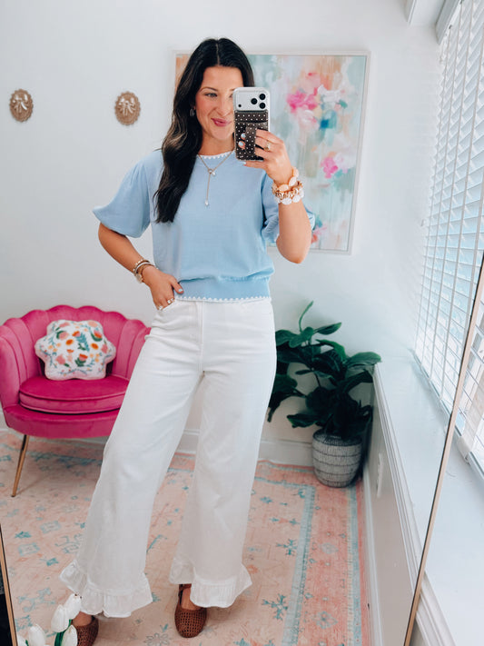 Briar Ruffle Bottom Denim - White