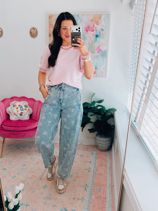 Elara Puff Sleeve Top - Pale Pink