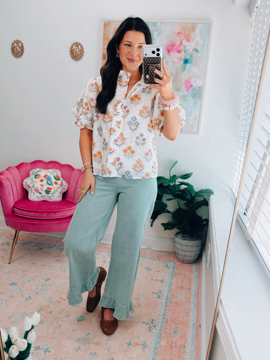 Briar Ruffle Bottom Denim - Seafoam