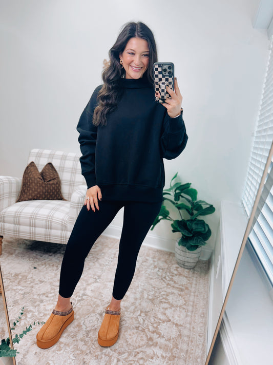 CozyCore Cotton Blend Mock Neck Pullover - Black
