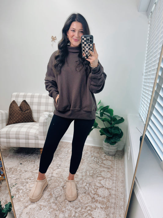 CozyCore Cotton Blend Mock Neck Pullover - Brown