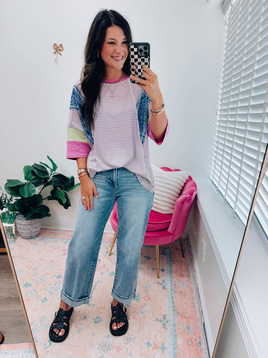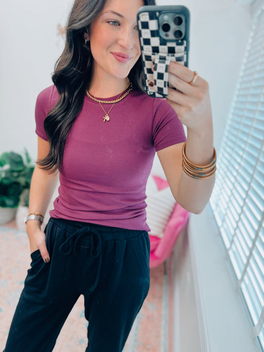 Essential Short-Sleeved Micro-Ribbed Top - Plum