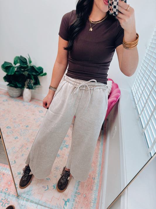 Essential Short-Sleeved Micro-Ribbed Top - Brown