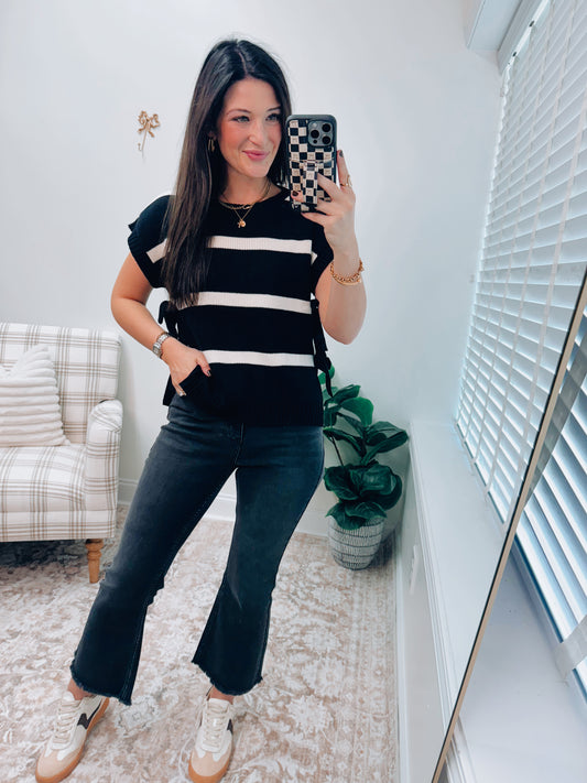 Sold outMaggie Striped Bow Tie Sweater Top
