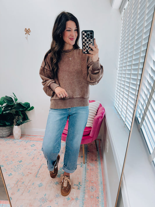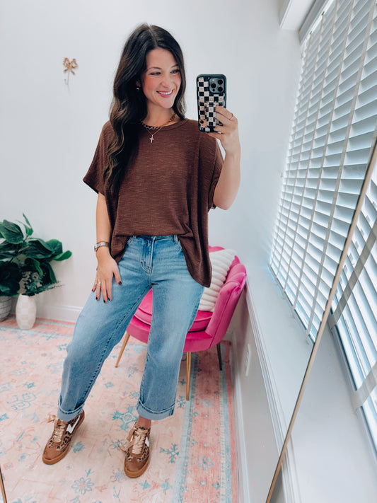 Essential Short-Sleeved Micro-Ribbed Top - Brown