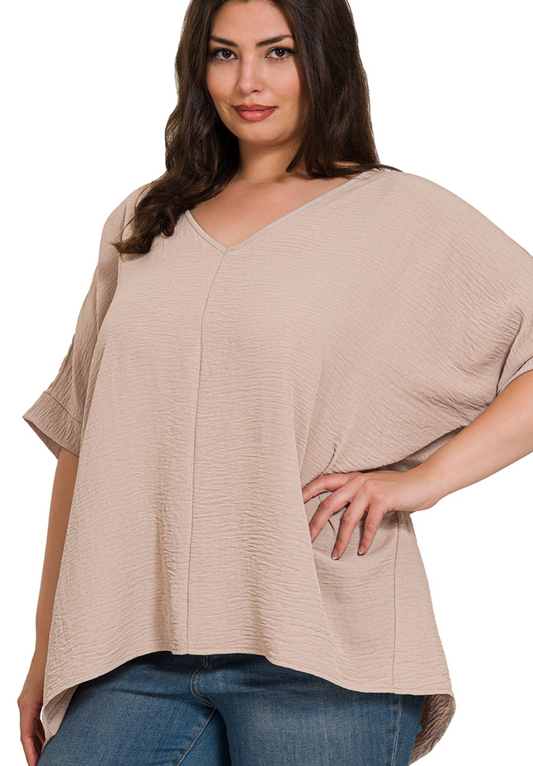 CURVY Denise Air Wick Woven Top - Sand Beige