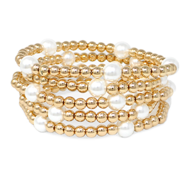 5 Row Pearl Station Beaded Bracelet