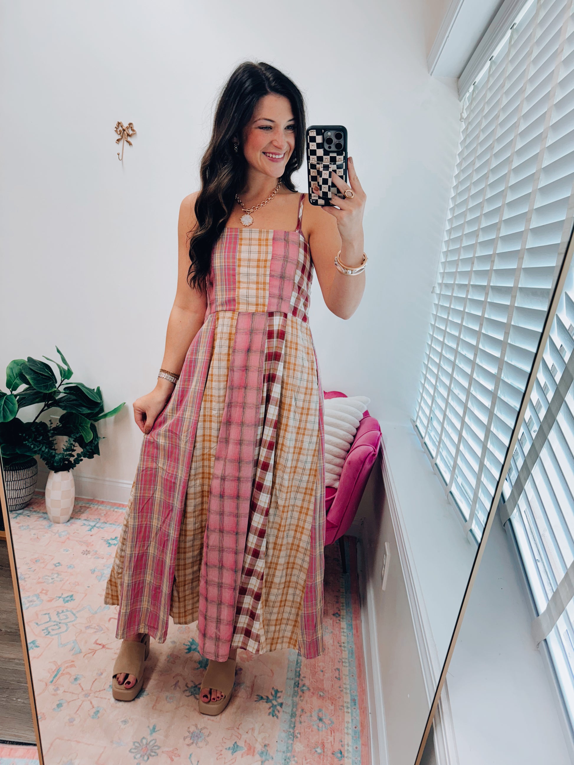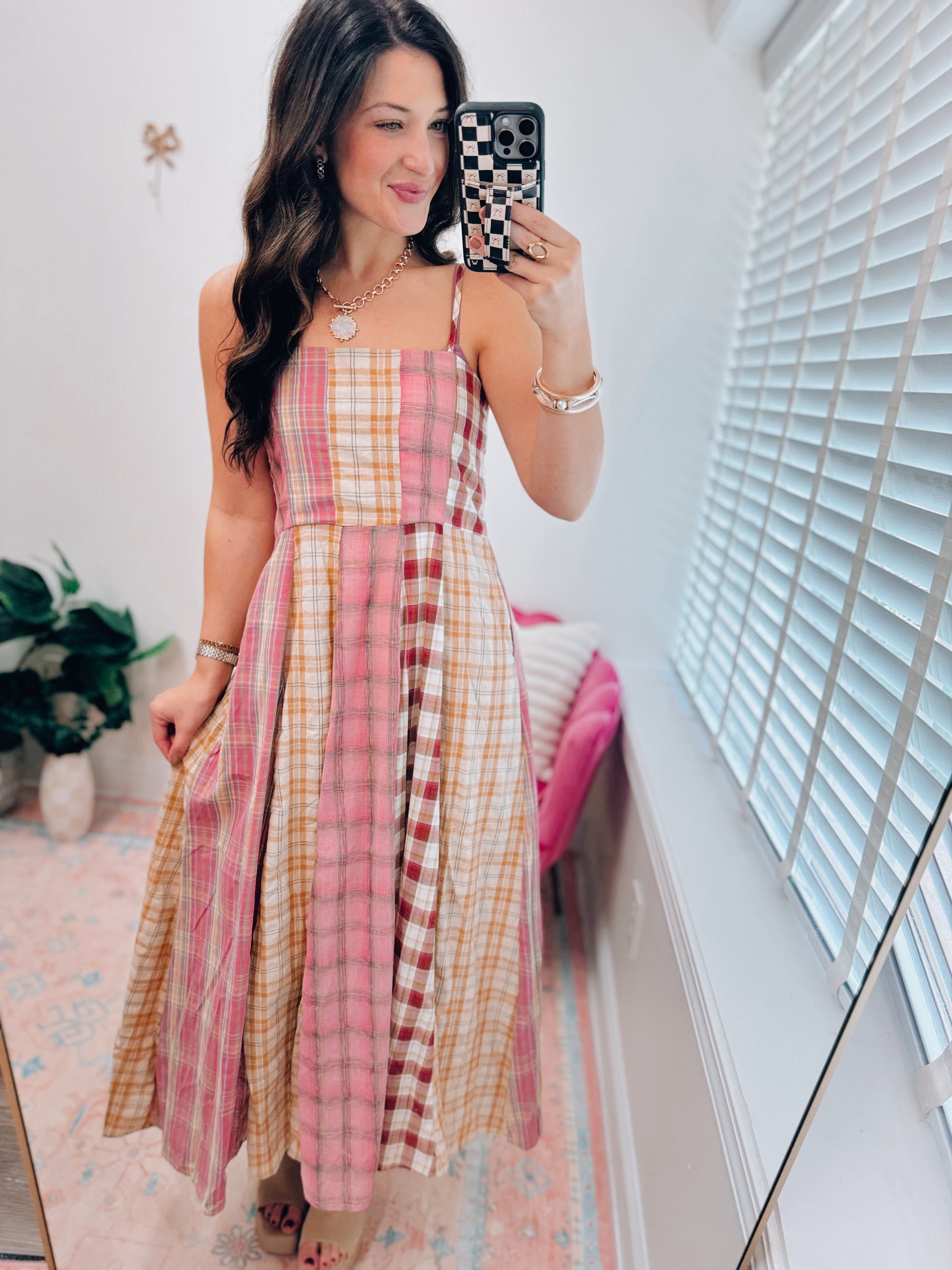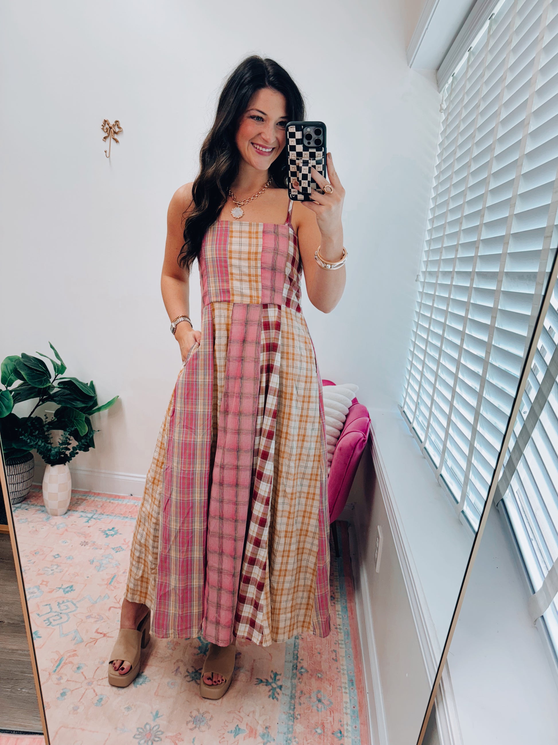 Aspen Fall Plaid Patchwork Maxi Dress