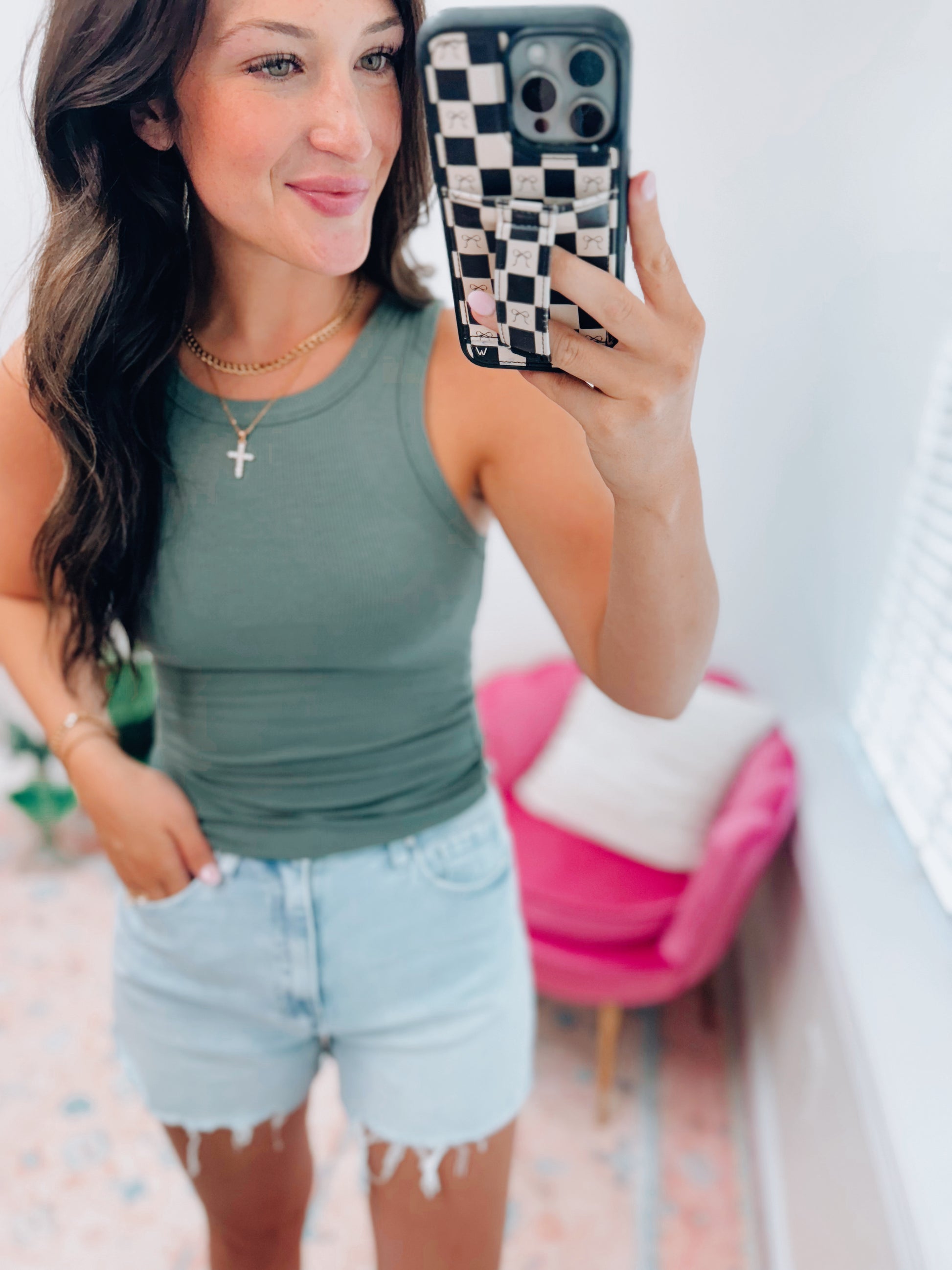Bella Ribbed Basic Tank - Moss Green