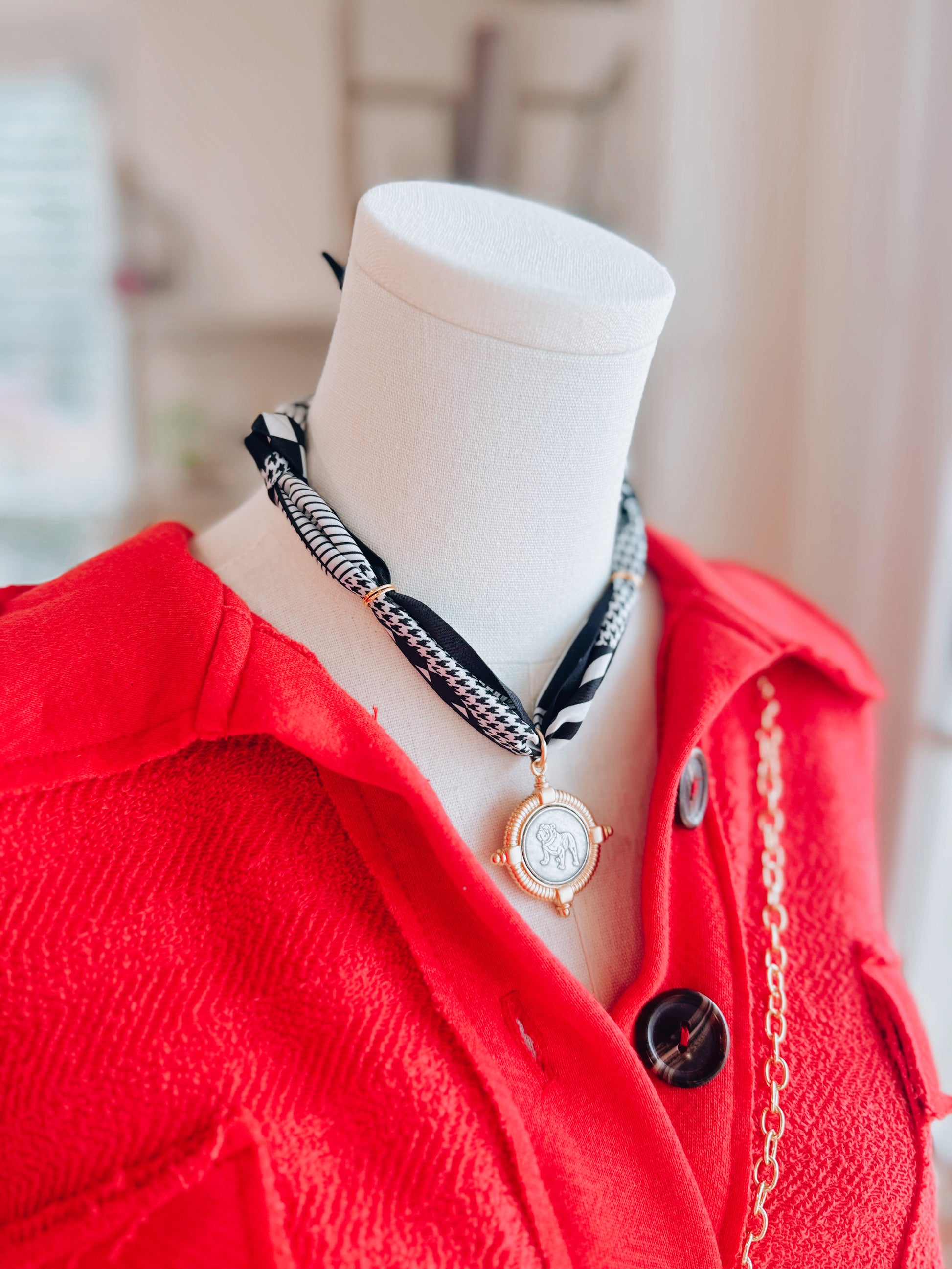 Bezel Bulldog Coin Scarf Necklace - Gold
