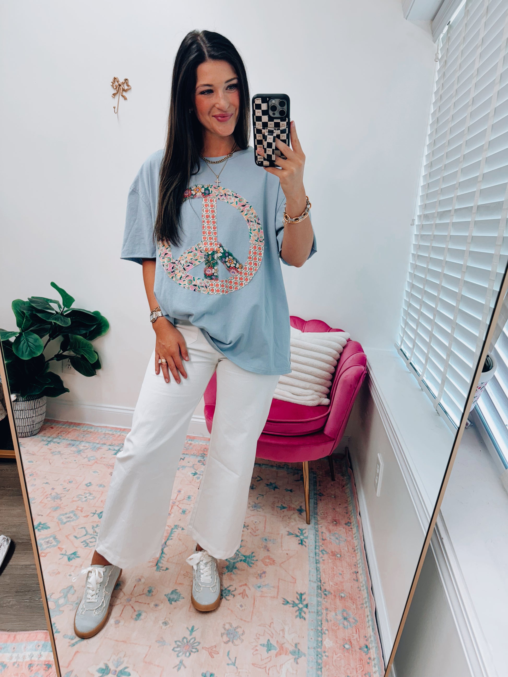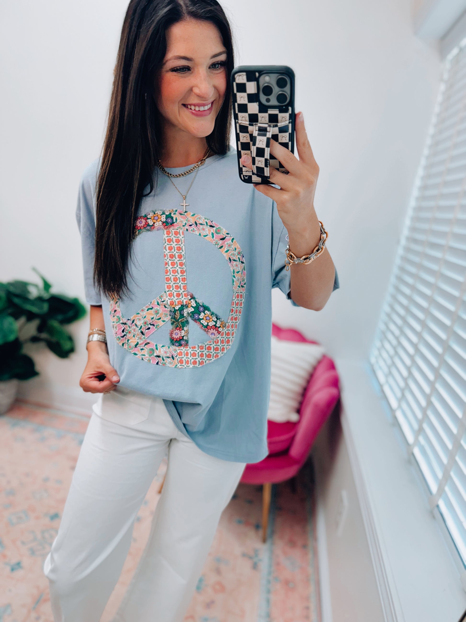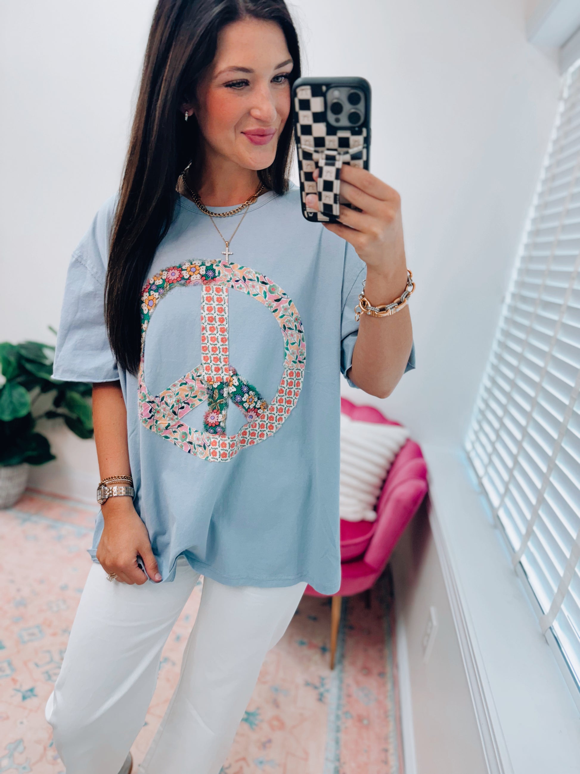 Blue Floral Peace Patchwork Top