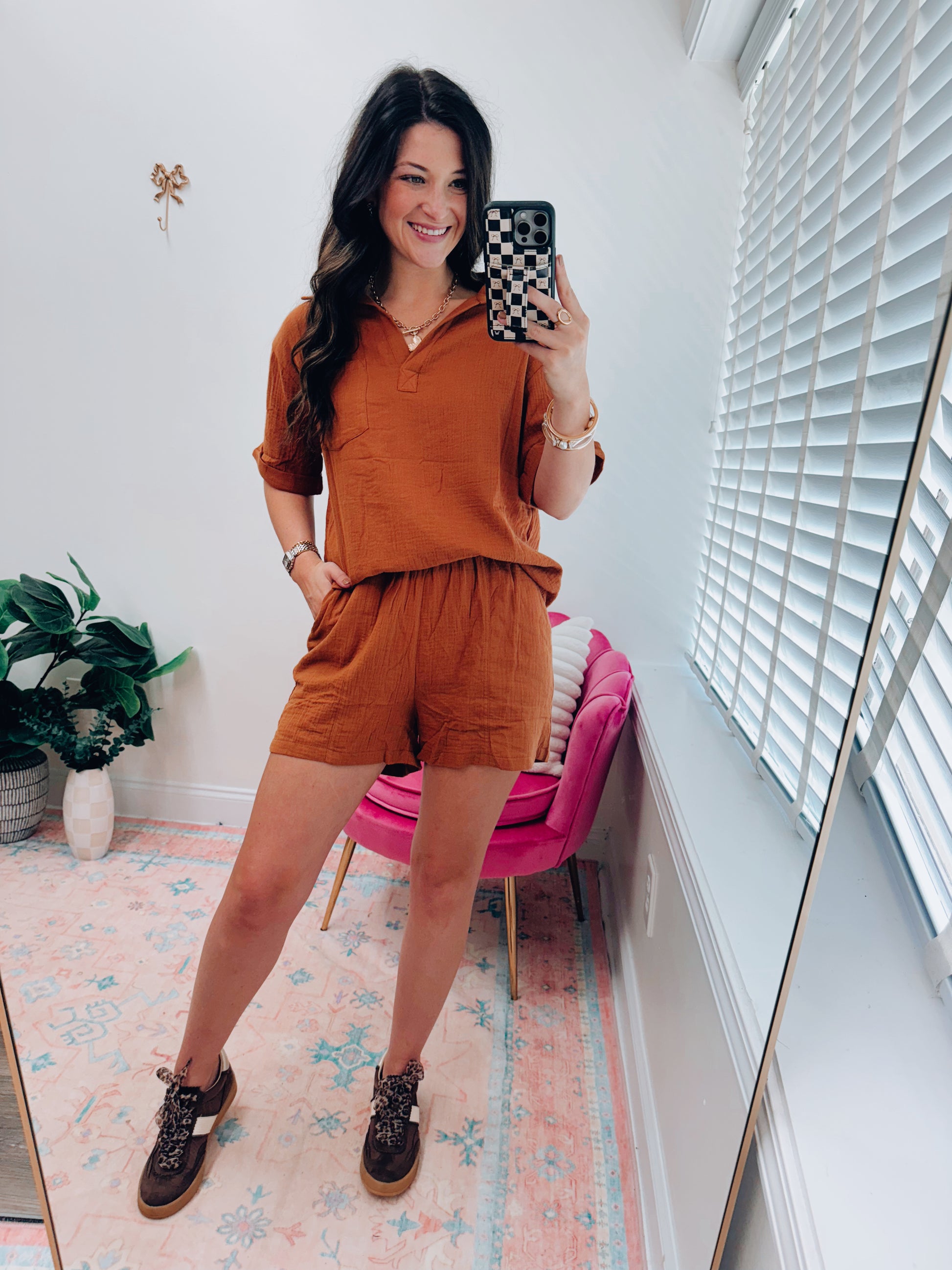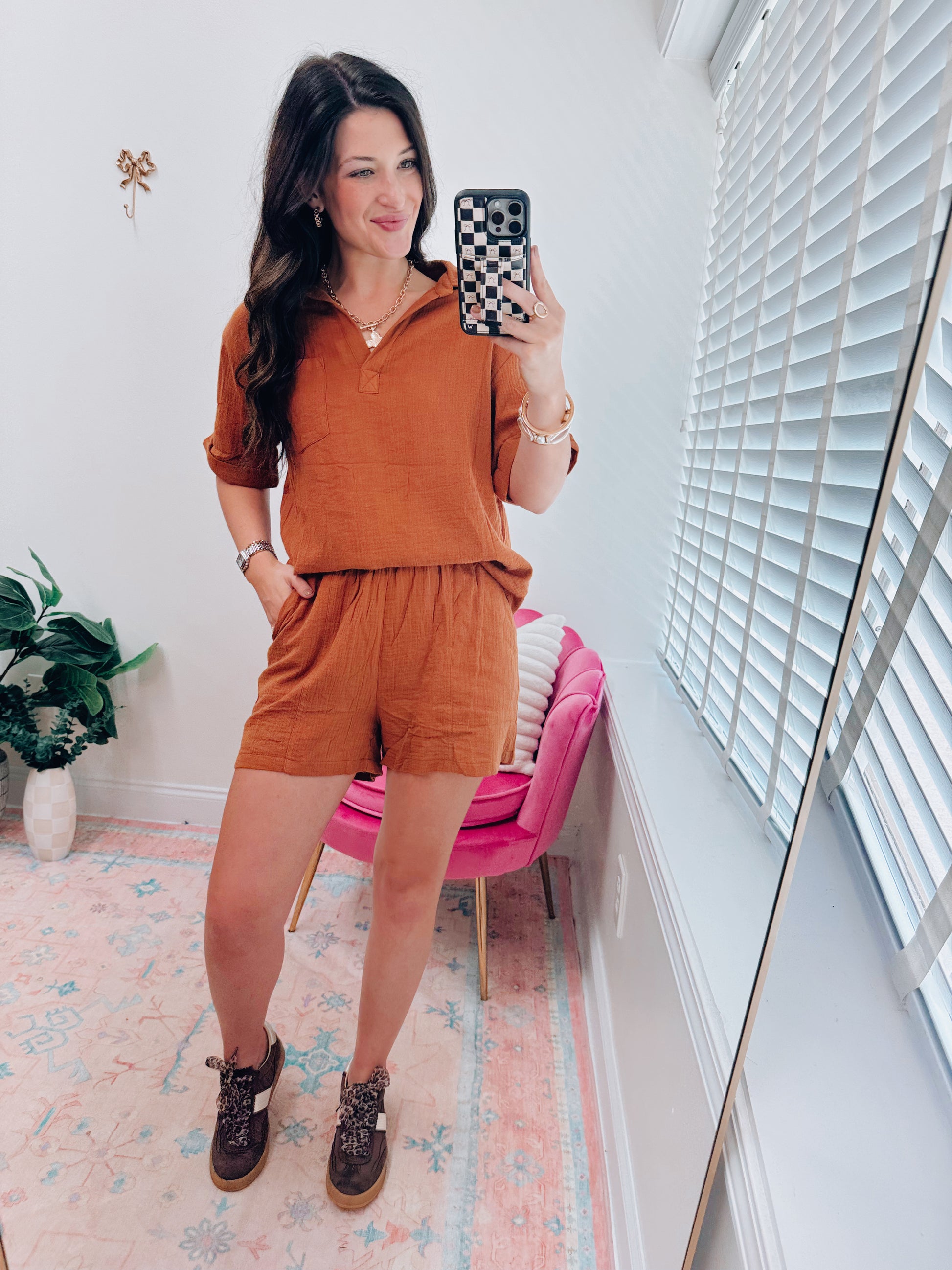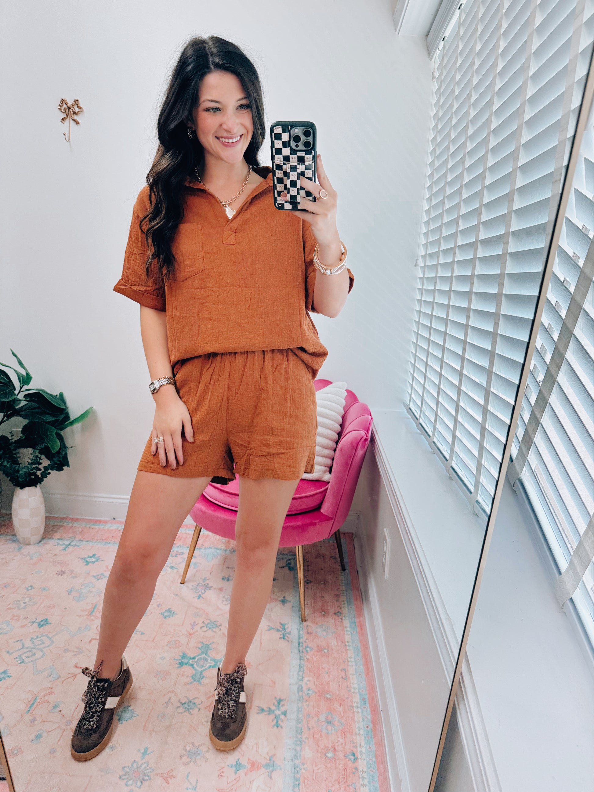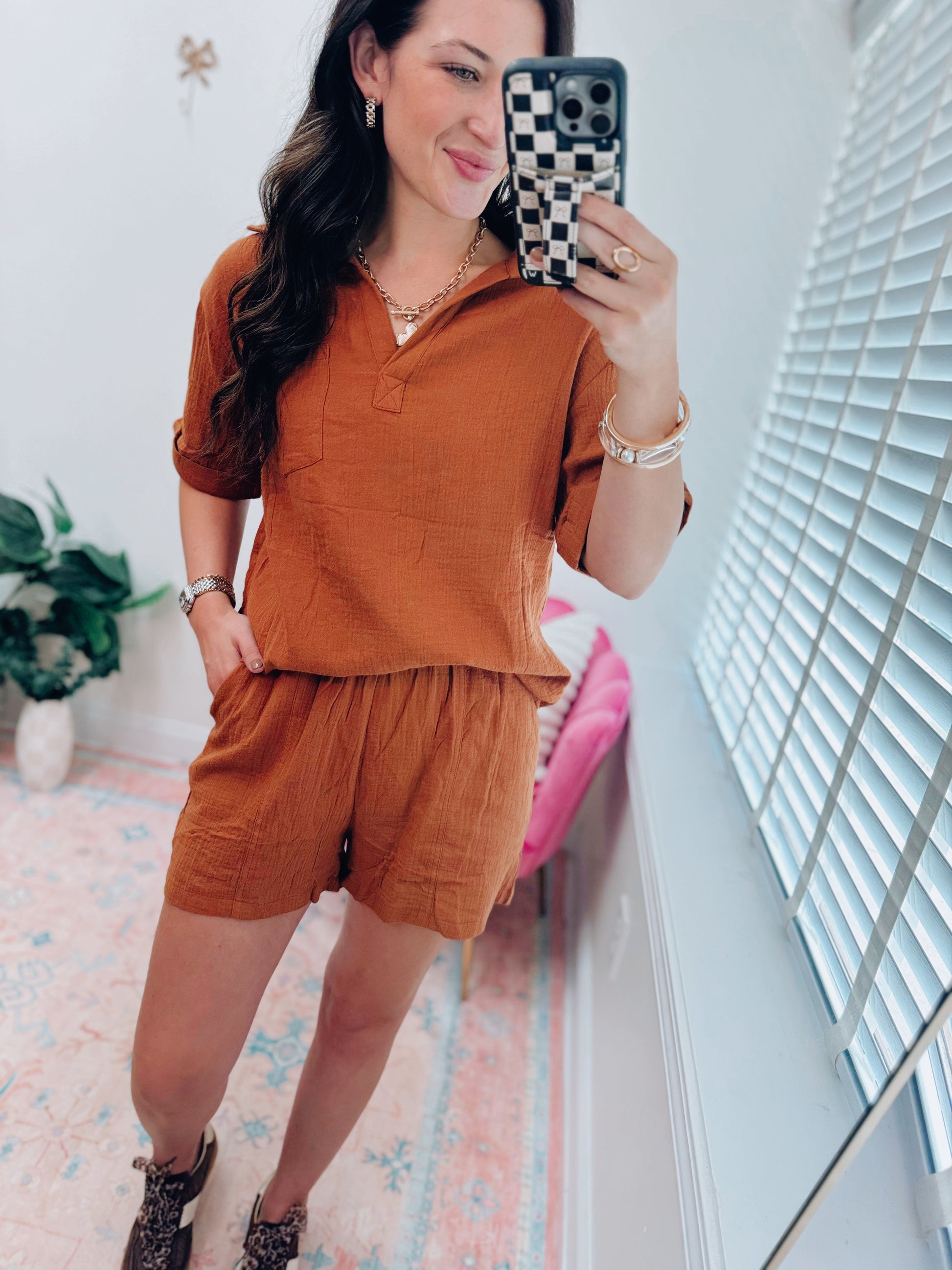 Chestnut Gauze Shorts Set